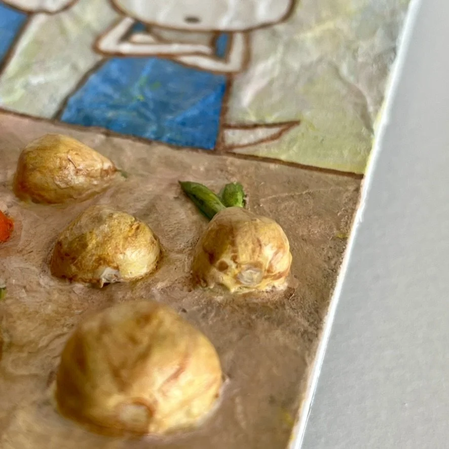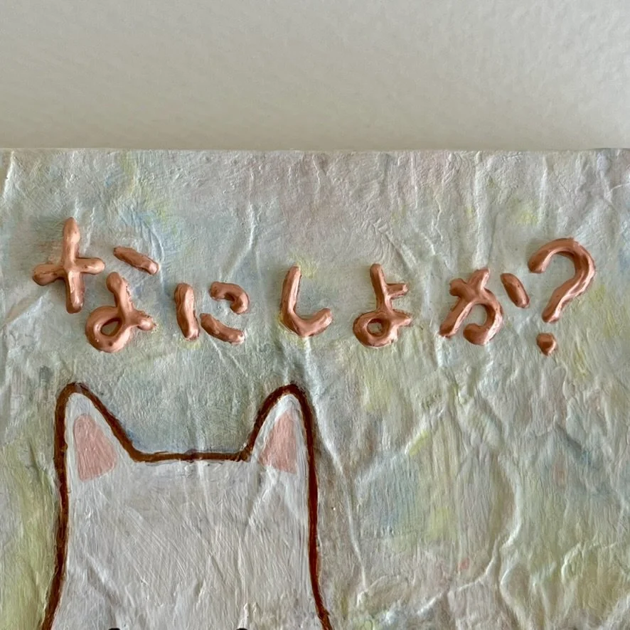現在は次回の個展3/20〜@ギャラリー子の星さん(このあと告知します)に向けて新作絵画を準備中なので、この「なにしよか?」の中身の発表はまだ先になるかもしれません。でも、こちらの表紙は子の星さんで展示しますので、どうぞお楽しみに!