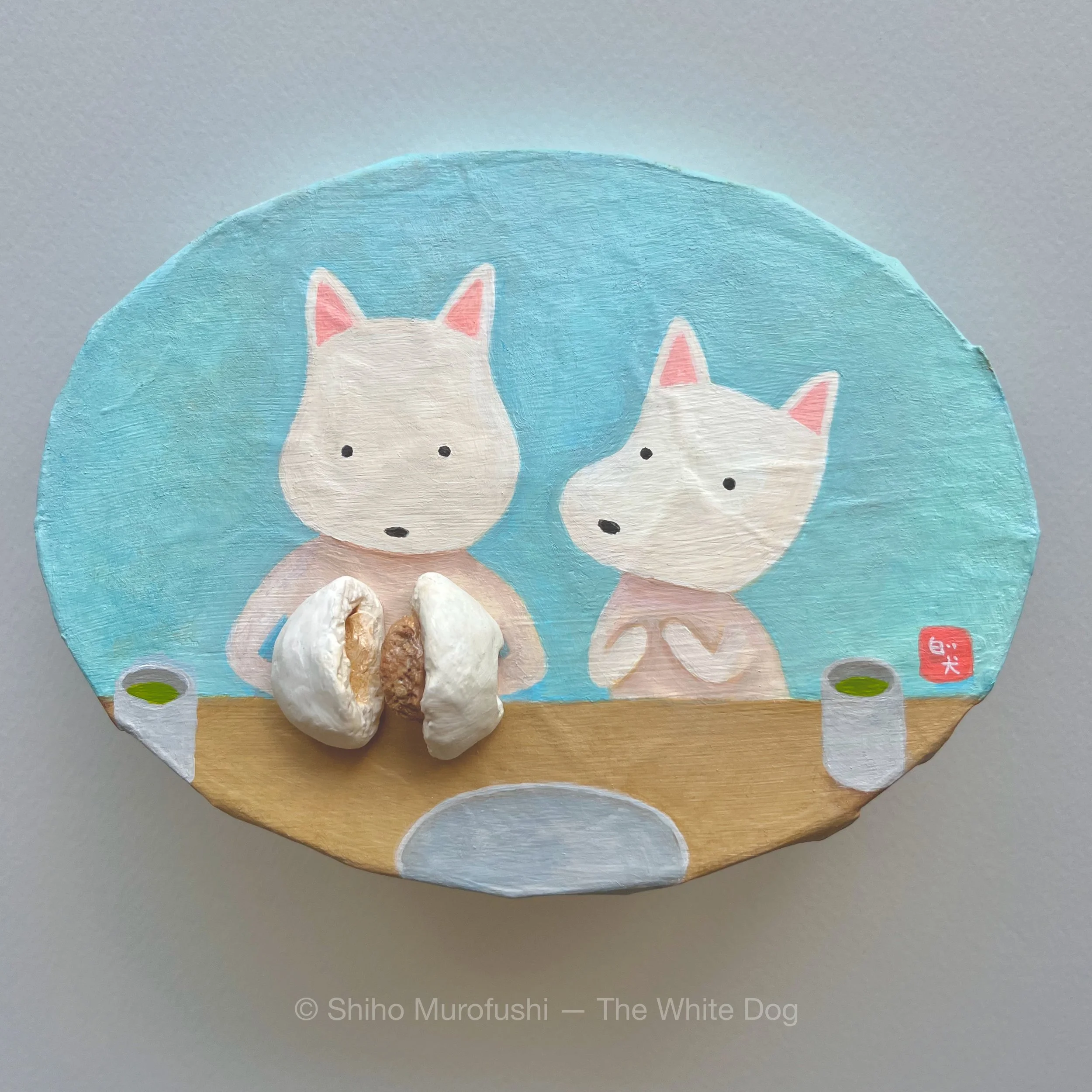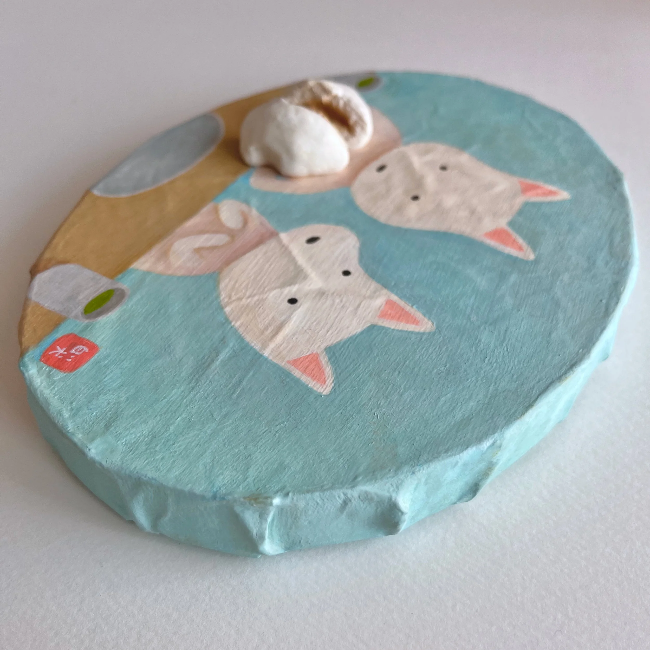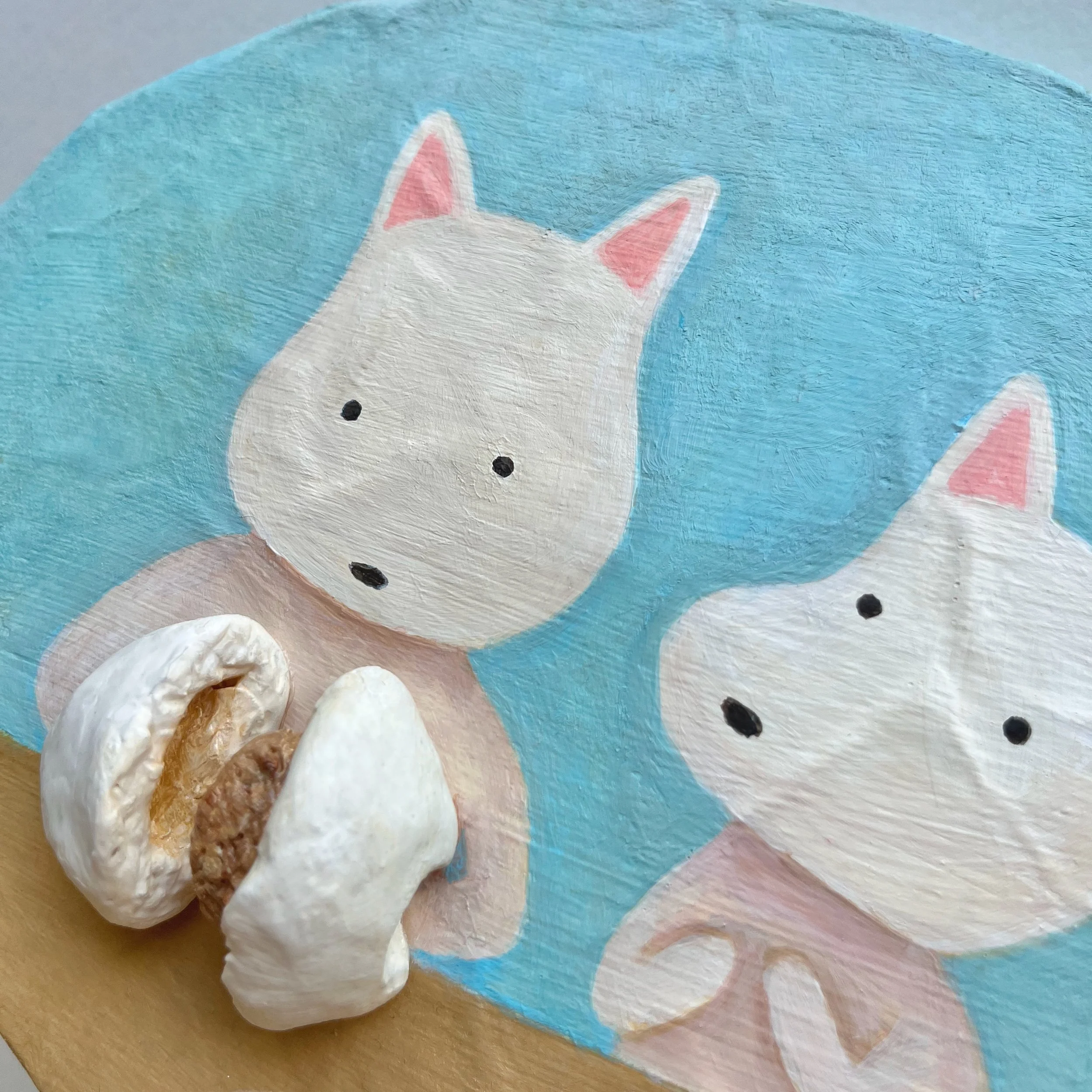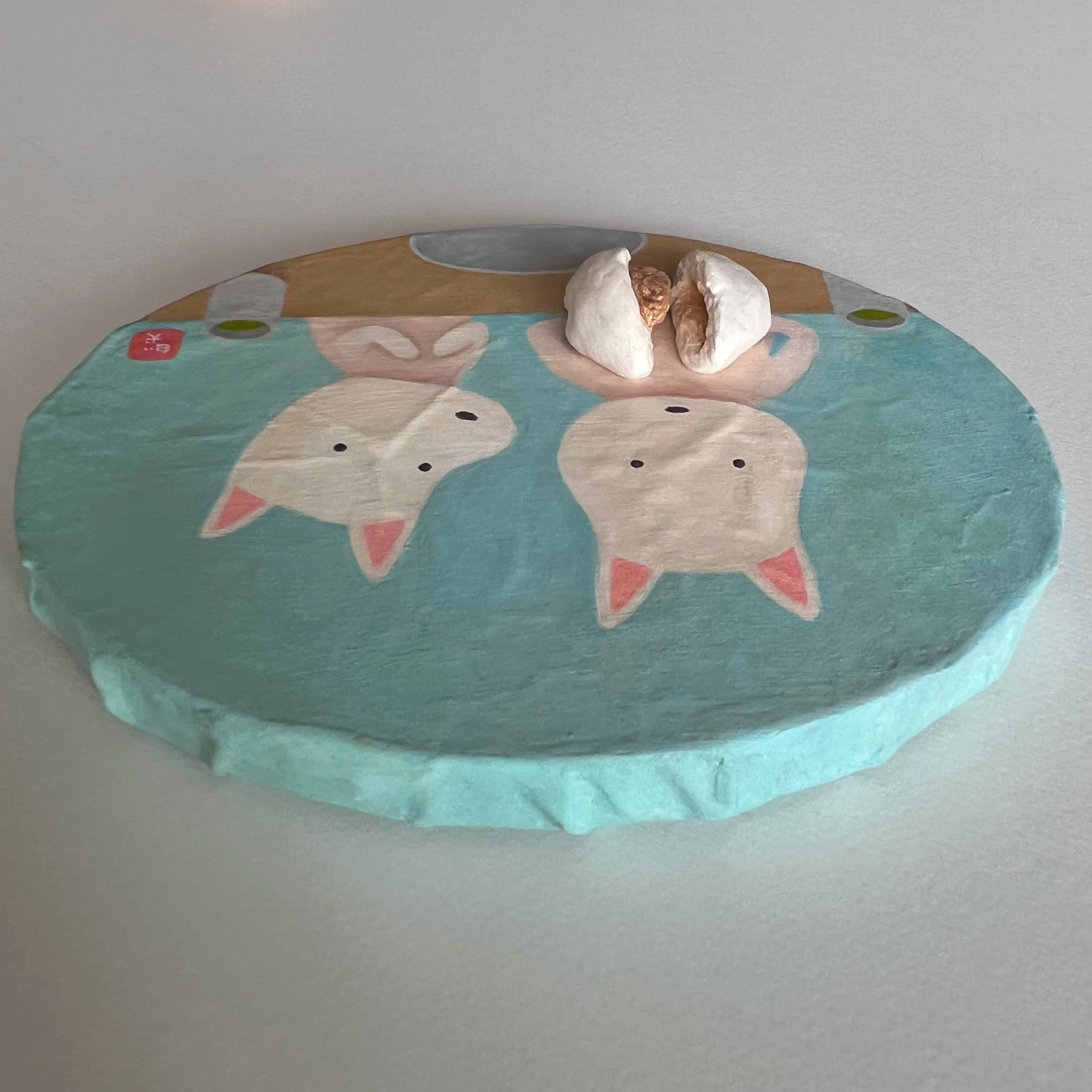 肉まんあるある を描きました。写真だとわかりにくいのですが、餡が空っぽの方も、ツヤツヤさせています。