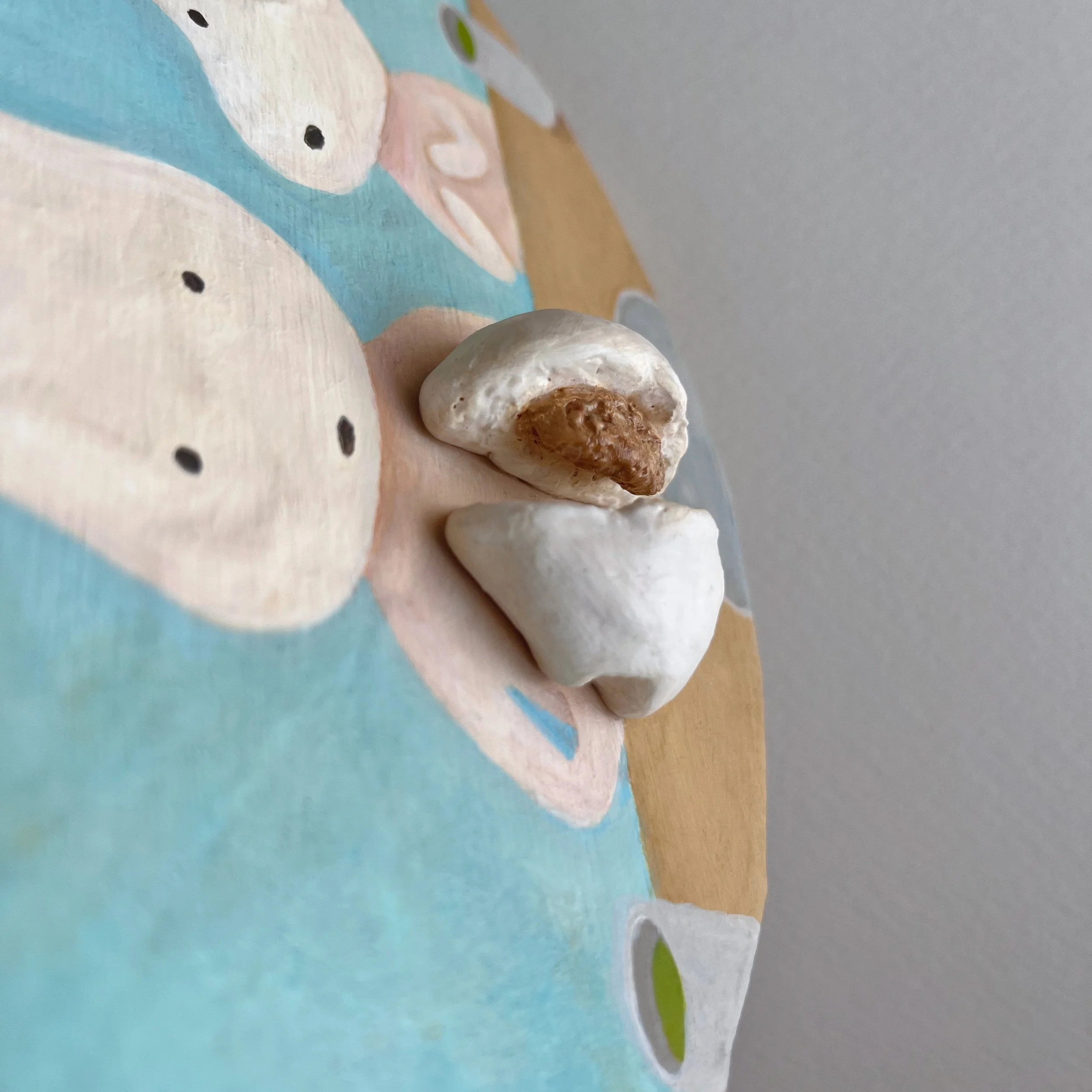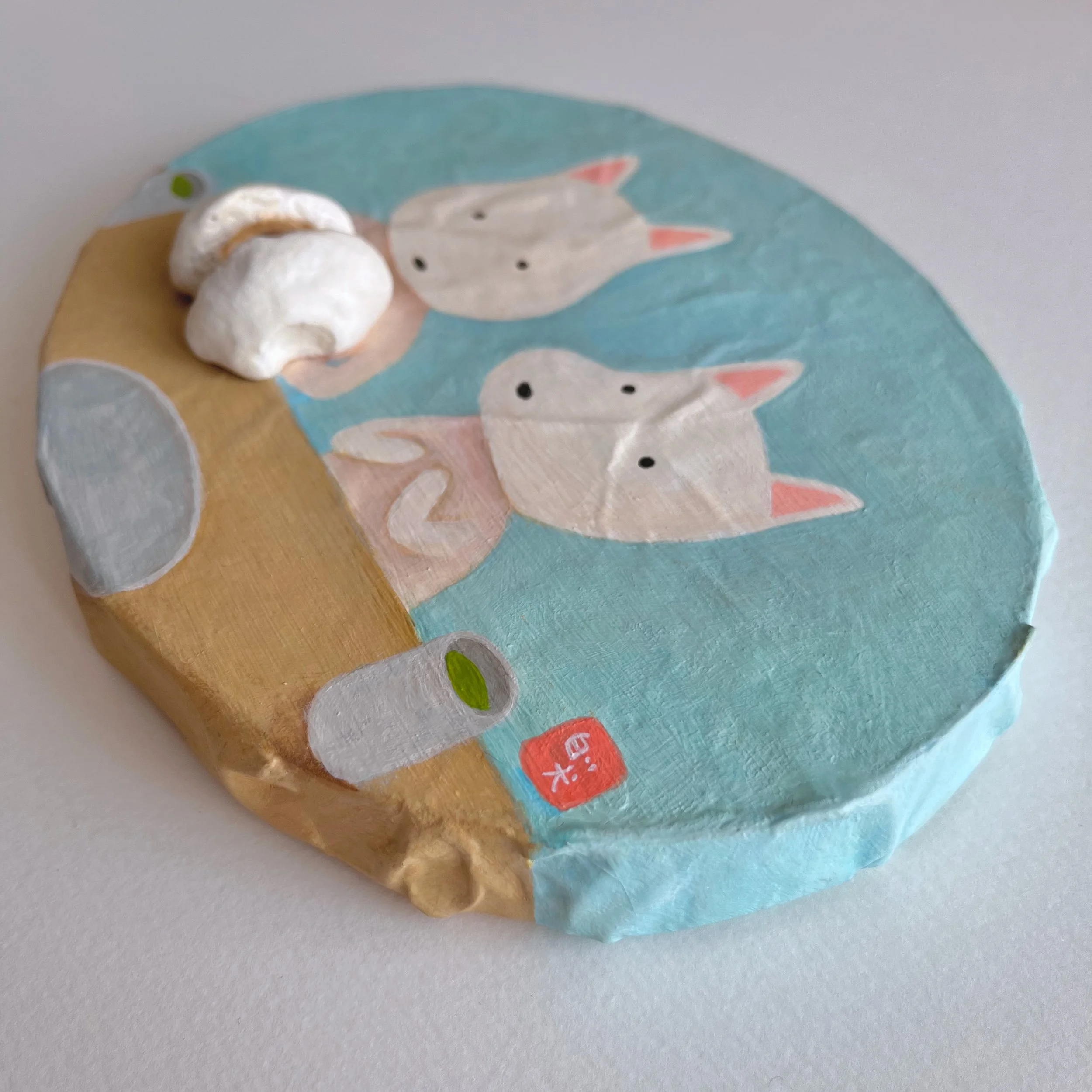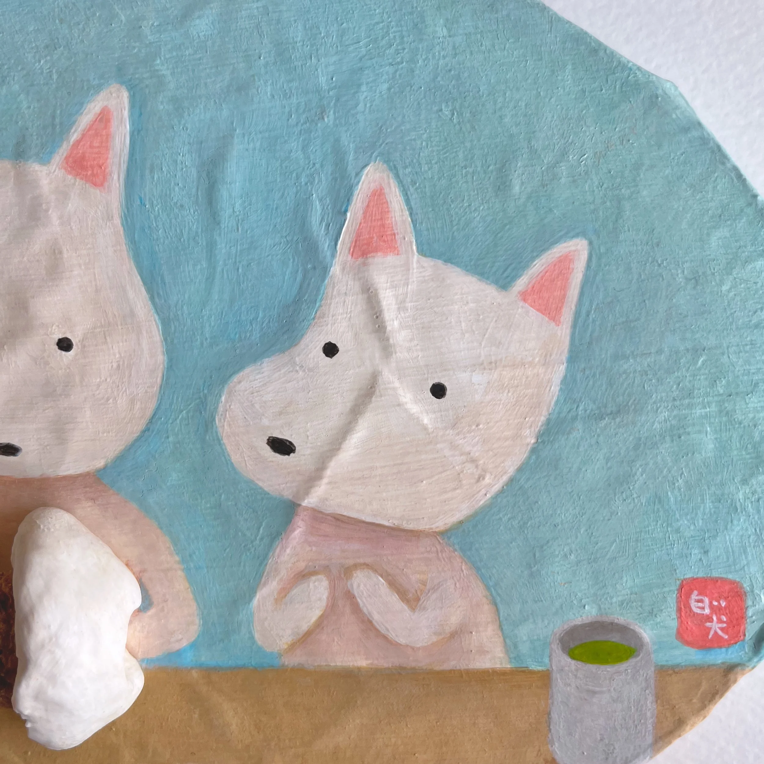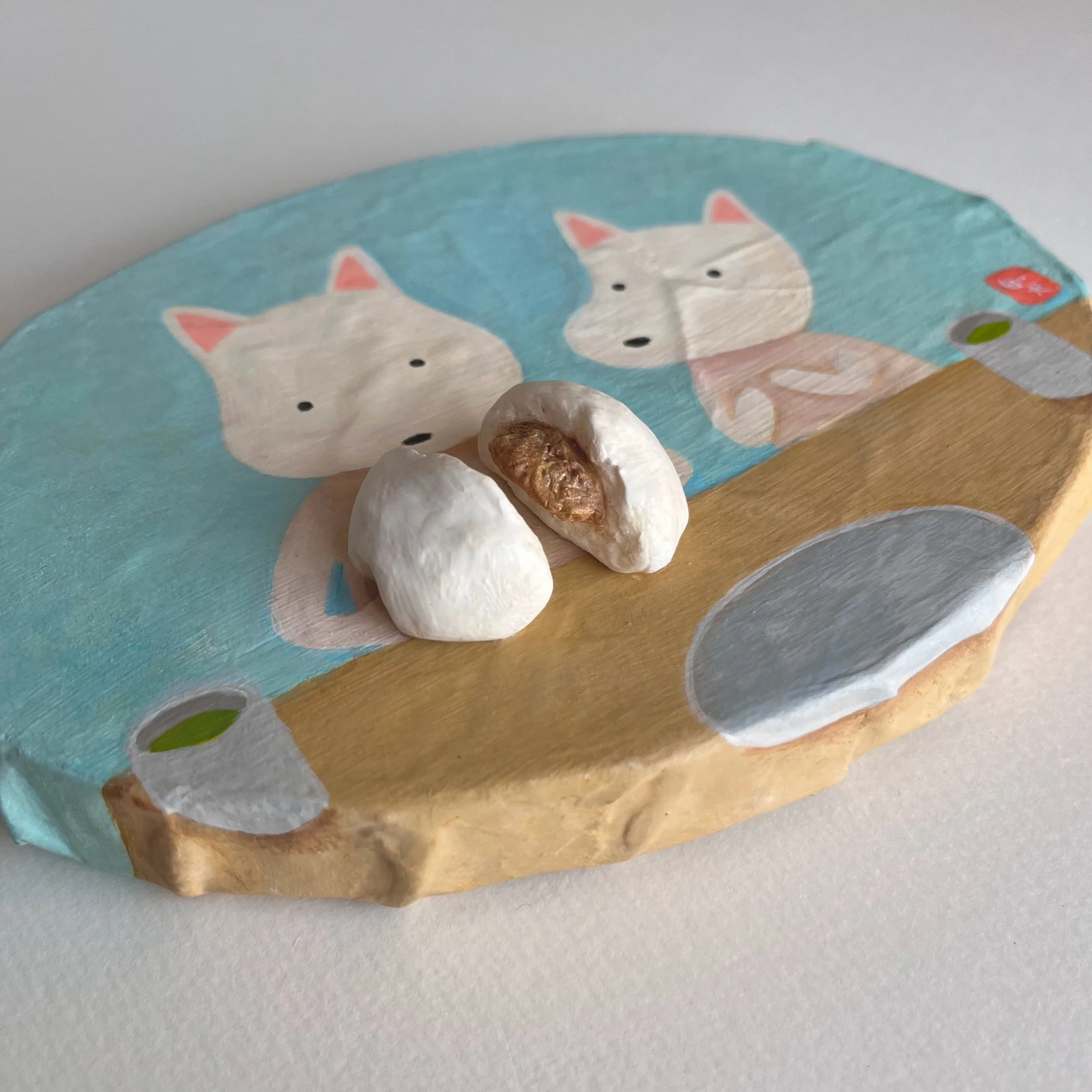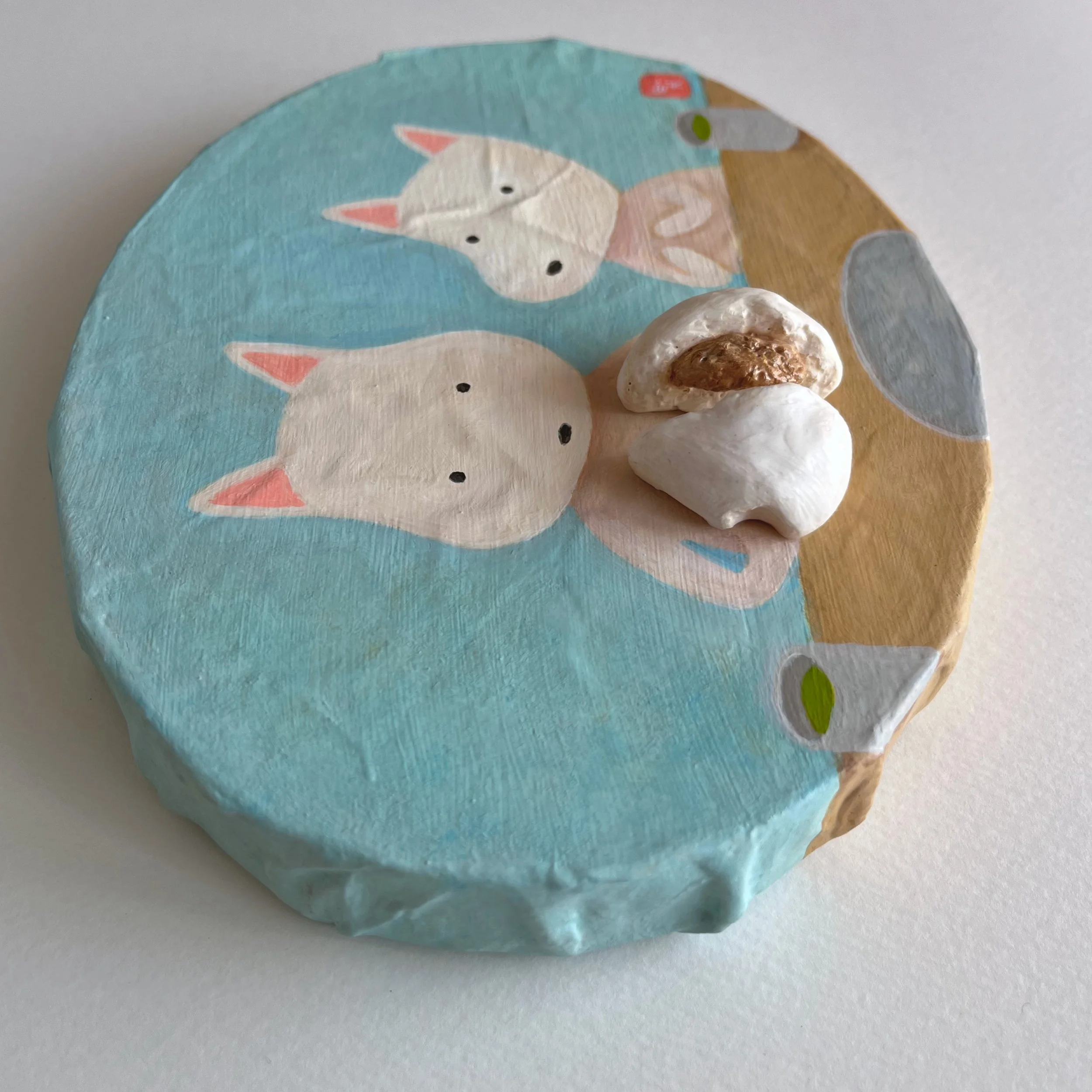 肉まんあるある を描きました。写真だとわかりにくいのですが、餡が空っぽの方も、ツヤツヤさせています。